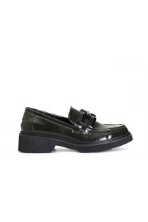Damenmokassin aus kunstleder mit lackeffekt bereichert durch eine klammer an der schlaufe. die innensohle ist aus leder.