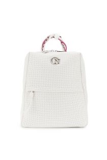 damenrucksack in nappa-optik mit mikroperforationen und metalllogo ivory