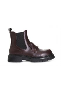 Damenstiefelette mit seitlichen gummizügen in gebürsteter optik und personalisiertem accessoire an der schlaufe. praktisch und vielseitig ideal zur vervollständigung verschiedener looks.
