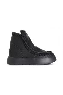 Damenstiefelette mit erhöhter sohle. obermaterial leder und futter aus kunstfell.