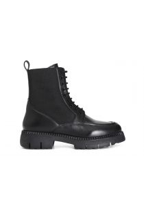 Damenstiefelette aus leder mit elastischem verschluss. die innensohle ist aus leder. 25 mm hohes plateau. 40 mm absatz.