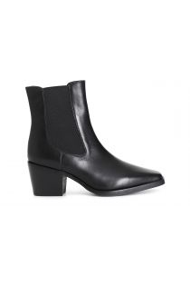 Damenstiefelette aus leder mit seitlichen gummizügen. 55 mm hoher absatz. die innensohle ist aus leder. ein schuh im texanischen stil mit kühnem charakter der ihrem look das gewisse etwas verleiht. 55 absatz. innensohle aus leder.
