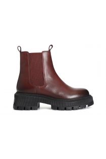 damenstiefelette aus leder mit gummizug bordeaux