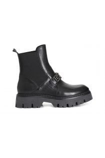 Lederstiefelette mit gummizug und schmuckaccessoire. die innensohle ist aus leder. die tanksohle aus extraleichtem material strafft das modell und macht es hyperaktuell.