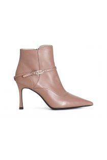 Damenstiefelette aus leder mit personalisierter schnalle und reißverschluss an der innenseite. feiner absatz 87 mm hoch. schlanke form. die innensohle ist aus leder. schuh mit elegantem und femininem stil.