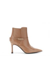 Damenstiefelette aus leder mit personalisierter schnalle und reißverschluss an der innenseite. feiner absatz 87 mm hoch. schlanke form. die innensohle ist aus leder. schuh mit elegantem und femininem stil.