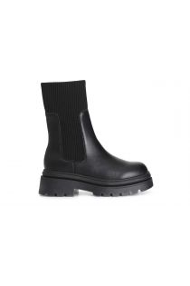 Damen-stiefelette aus leder und obermaterial mit sockeneffekt aus stretchmaterial das das anziehen erleichtert. 55 mm hoher absatz. die innensohle ist aus leder.