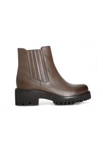 damenstiefelette aus leder mit verstecktem gummizug taupe