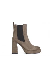 Damenstiefeletten aus mikrofaser mit seitlichen gummibändern die das anziehen erleichtern. 22 mm plateau und 100 mm hoher absatz. abgerundete form. die innensohle ist aus leder. all dies sorgt für ein gleichgewicht zwischen höhe schönheit und komfort.