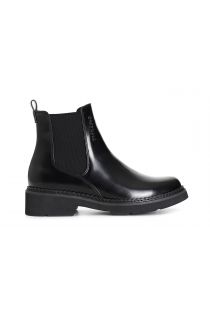 Stiefeletten mit seitlichem gummizug und cafènoir-schriftzug als accessoire. die innensohle ist aus leder.
