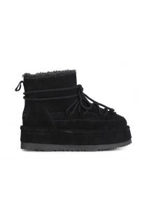 Damen-stiefelette aus wildleder mit kunstfell. das futter und die innensohle bestehen aus kunstfell. warmer und sehr bequemer schuh. ideal für kalte wintertage.