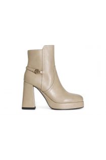 Damenstiefelette aus kunstleder mit besonderem cafènoir-accessoire. 22 mm plateau und 100 mm hoher absatz. abgerundete form. interner reißverschluss an der innenseite des schuhs. die innensohle ist aus leder. all dies sorgt für ein gleichgewicht zwischen höhe schönheit und komfort.