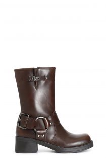 Damenstiefelette mit sporen und schnallen. 47 mm hoher absatz. die innensohle ist aus leder. mit ihrem starken design sorgen sie für einen gewagten und praktischen look.