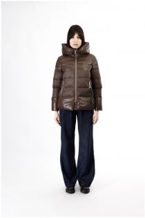 daunenjacke aus glänzendem und blickdichtem stoff dark brown