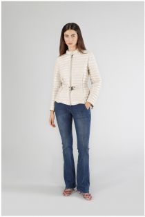daunenjacke mit elastischem gürtel und logo-schnalle butter