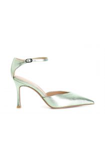 dekolleté aus laminiertem leder mit knöchelriemen mint
