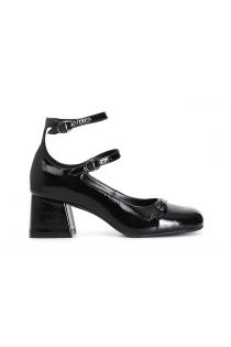 dekolleté mit 3 schnallen in lackoptik black