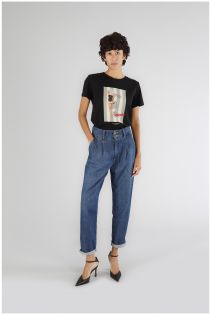 Mom-fit-jeans mit bundfalten vorne aus lockerem denim-canvas. perfektes kleidungsstück für alle die sich unabhängig und modisch fühlen experimentierfreudig sind und immer schick und originell sein möchten.