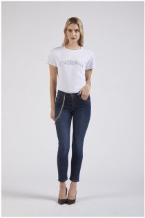 denim skinny-jeans mit kettenanhängern medium darck blu