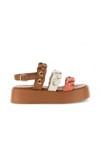 dreiriemen-sandalen aus nappaleder mit ösen und ziernähten multi coral