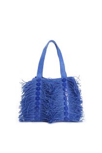 einkaufstasche aus raffiabast mit fransen und zierknöpfen blue