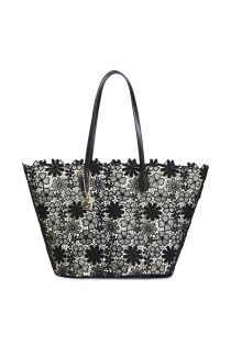 einkaufstasche aus spitze mit metallanhänger black