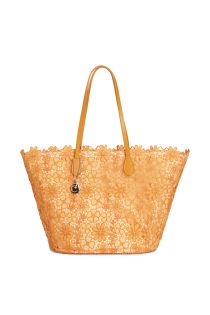 einkaufstasche aus spitze mit metallanhänger orange