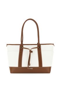 einkaufstasche in canvas-optik mit kontrastierendem besatz in lederoptik. leather/natural