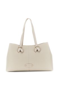 einkaufstasche in gehämmertem leder-look mit glatten, kontrastierenden details nude