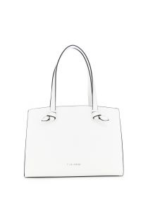 einkaufstasche in saffiano-optik mit geknoteten henkeln und metallösen white