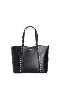 einkaufstasche mit cabochon-steinen, nieten und eleganten gepolsterten griffen black