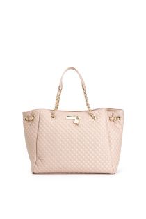 Shopping bag mit kleiner rautensteppung und kettengriff mit schulterriemen. cafènoir-logo mit vorhängeschloss-accessoire.
