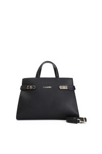 einkaufstasche mit kork-effekt und metallverschlüssen black