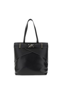Einkaufstasche aus Kunstleder mit geometrischem Muster, Zierschlaufe und Metallaccessoire. Praktisch und geräumig – perfekt für jeden Anlass.