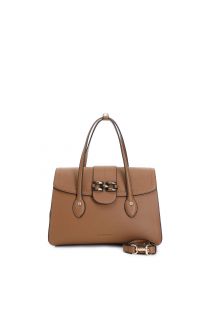 einkaufstasche mit überschlag, lackierte klammerapplikation brown