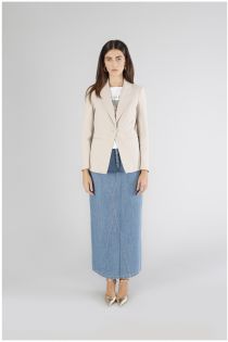 Elegante einreihige jacke aus stretchstoff. zwei knopfverschlüsse und leistentaschen. perfektes kleidungsstück für lässige oder formelle anlässe.