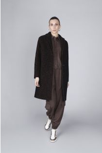Einreihiger, knielanger, eiförmiger Mantel aus beflocktem Stoff. Ein lässig-elegantes Oberbekleidungsstück, perfekt für komfortable und stilvolle Winter-Looks. Normale Passform. Das Model ist 173 cm groß und trägt Größe S.