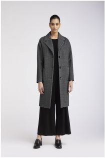 Einreihiger mantel mit aufgesetzten taschen aus einem polyviskose-stoff mit resca-muster.