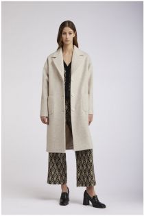 Einreihiger mantel mit aufgesetzten taschen aus einem polyviskose-stoff mit resca-muster.