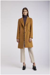 Zeitloser einreihiger basic-mantel aus polyviskose-stoff der in einer breiten farbpalette erhältlich ist.