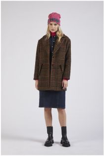Einreihiger mantel aus prince of wales-stoff mit kontrastierenden streifen.
