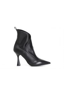 Damenstiefelette aus nappaleder. eleganter femininer und sehr origineller schuh. schlanker 95 mm diabolo-absatz. weiche innensohle aus leder.