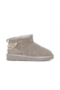Flache Hochfrontpumps aus Rauleder mit dekorativen Ketten und Futter aus Ökopelz