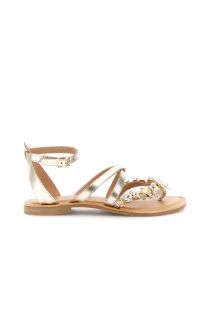 flache leder-flip-flops mit einem schmuckaccessoire gold