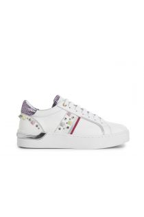 flache leder-sneaker mit farbigen 3d-einsätzen white