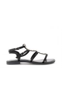 flache ledersandalen mit schmuckschnalle black