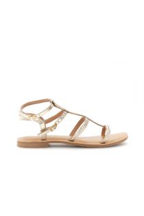 flache ledersandalen mit zopfstickerei gold