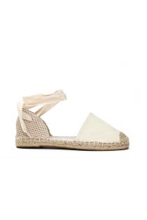 Flache Sandalen aus Stoff mit Schuhboden aus Bast und Sklavenschnürung