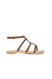 Flache Sandalen mit Lederkäfig und Schmuckdetail