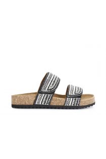 flache sandalen, pantoffel-modell, aus kork und strass mit farbverlauf multi black